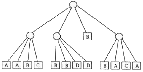 2차원 쿼드트리(Quadtree)에서 B의 면적은? (단, 최하단에서 하나의 셀 면적을 2로 가정)