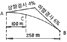 그림과 같이 2차포물선에 의하여 종단곡선을 설치하려 한다면 C점의 계획고는? (단, A점의 계획고는 50.00이다.)