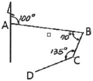다각측량 결과가 그림과 같고 측점 B의 좌표가 (100, 100), BC의 길이가 100m일 때, C점의 좌표(x, y)는? (단, 좌표의 단위는 m이다.)