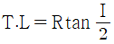 원곡선 설치에 있어서 접선장(T.L)을 구하는 공식은? (단, R은 곡선 반지름, I는 교각)