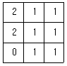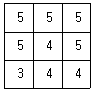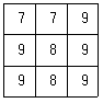 아래의 래스터 데이터에 중앙값 윈도우(Median kernel)를 3×3 크기로 적요한 결과로 옳은 것은?