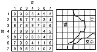 다음은 어느 지역의 영상과 동일한 지역의 지도이다. 이 자료를 이용하여 “논”의 훈련지역(training field)을 선택한 결과로 적당한 것은?