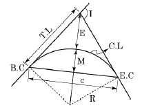 노선측량의 곡선설치법에서 단곡선의 요소에 대한 식으로 옳지 않은 것은? (단, R은 곡률반지름, I는 교각이다.)