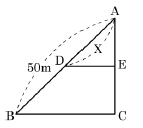 그림에서 △ABC의 토지를 BC에 평행한 선분 DE로 △ADE:□BCED=2:3으로 분할하려고 할 때 AD의 길이는? (단, AB의 길이=50m)