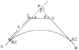 교점 P에 접근할 수 없는 그림과 같은 곡선설치에서 C점으로부터 B, C까지의 거리 X는? (단, σ=50°, β=90°, γ=40°, CD=200m, R=300m)