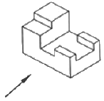 그림과 같은 등각 투상도에서 화살표 방향을 정면도로 할 때 이에 대한 저면도로 가장 적합한 것은?