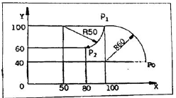다음 그림의 점 P1에서 P2원호 경로를 가공하기 위하여 중분방식으로 프로그램을 할 때 옳은 것은?