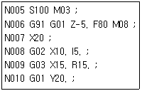 다음 CNC 밀링 프로그램에서 오류가 발생되는 블록은?