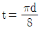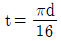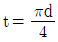 1줄 겹치기 리벳 이음에서 피치는 레벳 지름의 3배이고, 리벳의 전단력과 강판의 인장력이 같을 때, 강판 두께(t)와 리벳지름(d)과의 관계는? (단, 강판에서 발생하는 인장응력은 리벳에서 발생하는 전단응력의 2배이다.)