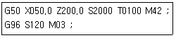 다음 CNC 선반가공 프로그램에서 일감의 지름이 20mm일 때 주축의 회전수는 약 얼마인가?