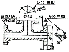다음과 같은 도면에서 플랜지 A부분의 드릴구멍의 지름은?