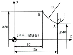 CNC 선반으로 다음 그림의 A에서 B로 가공하려고 할 때 지령으로 옳은 것은?
