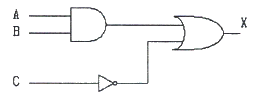 아래 그림의 논리회로와 같은 진리값을 NAND소자만으로 구성하여 나타내려면 NAND소자는 최소 몇 개가 필요한가?
