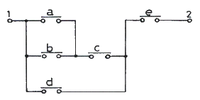 그림과 같은 단자 1, 2 사이의 계전기 접점회로 논리식은?