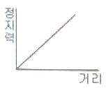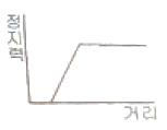즉시 작동형 추락방지안전장치가 작동할 때 정지력과 거리에 대한 그래프로 옳은 것은?