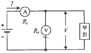 다음 회로와 같이 외전압계법을 통해 측정한 전력(W)은? (단, Ri:전류계의 내부저항, Re:전압계의 내부저항이다.)