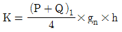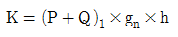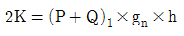 즉시 작동형 비상정지장치의 성능시험 시 흡수할 수 있는 총에너지를 구하는 식을 옳게 나타낸 것은? (단, K: 비상정지장치의 흡수에너지(N∙m),(P+Q)1비상정지장치의 허용총중량(Kg), h: 낙하거리(m), gn: 중력가속도(9.8m/s2)