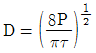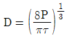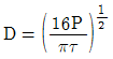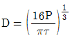 비틀림 모멘트 P을 받는 중실축의 원형단면에서 발생하는 전단응력이 τ일 때 이 중실축의 지름 D를 구하는 식으로 옳은 것은?