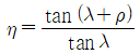 볼트 체결에 있어서 마찰각을 ρ, 리드각을 λ라고 할 때 나사의 효율(η)을 나타내는 식은?