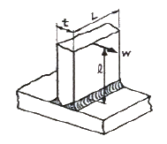 그림과 같이 용접이음을 하였을 때 굽힘응력을 계산하는 식으로 옳은 것은? (단, L : 용접 길이, t : 용접치수(용접판 두께), ℓ : 용접부에서 하중 작용선까지 거리, W : 작용하중이다.)