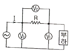 그림은 3개의 전압계를 사용하여 교류측정이 가능한 회로이다. 이 회로에서 부하의 소비전력을 구하면?