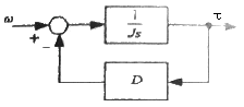 일 때, 이 식으로 그린 블록선도는? (단, J는 관성계수, D는 마찰계수, τ는 전동기에서 발생되는 토크, ω는 전동기의 회전속도이다.)