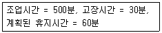 어떤 설비에 대한 시간가동률을 산출하려고 한다. 지난 1주간의 설비가동 현황은 다음과 같다. 지난 1주간의 시간가동률은 약 몇 % 인가?