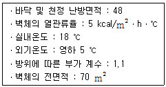다음 조건과 같은 사무실의 난방부하(kW)는?