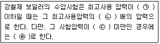 다음은 보일러 수압시험 압력에 관한 설명이다. ㉠~㉣에 해당하는 숫자로 알맞은 것은?