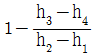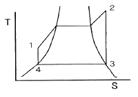 다음 랭킨사이클에서 1-2과정은 보일러 및 과열기에서의 열 흡수, 2-3은 터빈에서의 일, 3-4는 응축기에서의 열 방출, 4-은 펌프의 일을 표시할 때, 열효율을 나타내는 식은? (단, h1, h2, h3, h4 는 각 지점에서의 엔탈피를 나타낸다.)