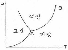 그림은 P-T(압력-온도)선도상에서의 물의 상태도이다. 다음 설명 중 틀린 것은?