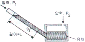 아래와 같은 경사압력계에서 P1-P2는 어떻게 표시되는가? (단, 유체의 밀도는 ρ, 중력가속도는 g로 표시된다.)