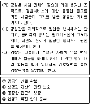 코헨(Cohen)과 펠드버그(Feldberg)는 사회계약설로부터 도출한 경찰활동의 기준(윤리표준)을 제시하였다. 이와 관련된 <보기 1>과 <보기 2>의 내용이 가장 적절하게 연결된 것은?