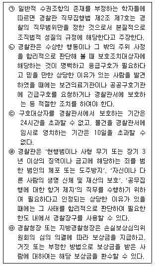 「경찰관 직무집행법」에 대한 내용으로 옳지 않은 것은 모두 몇 개인가?