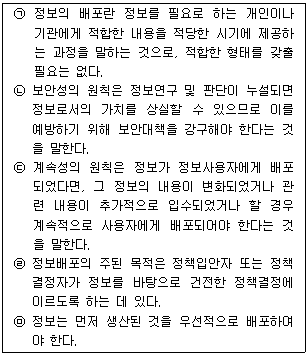 정보의 배포와 관련된 설명으로 ㉠~㉤의 내용 중 옳고 그름의 표시(O, X)가 모두 바르게 된 것은?