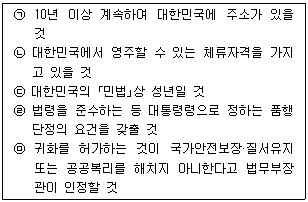 「국적법」상 일반귀화의 요건에 관한 내용이다. ㉠~㉤의 내용 중 옳고 그름의 표시(O, X)가 모두 바르게 된 것은?