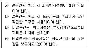 아래의 선원 취급방법 중 옳은 것은 모두 몇 개인가?