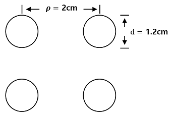 다음 핵연료 배치로부터 레이놀즈 수를 구하기 위한 등가직경은? (단, 핵연료 중심간 거리는 2cm이며, 핵연료 지름은 1.2cm이다.)