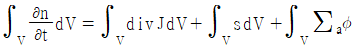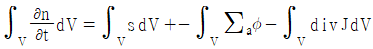 중성자를 포함하는 매질 내 임의의 체적 V에서의 중성자 거동을 나타낸 항들이 다음과 같이 주어질 때 이들의 관계식으로 옳은 것은?