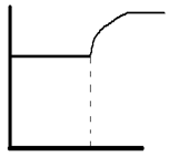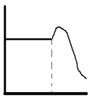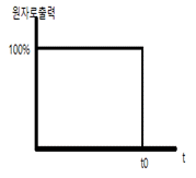 원자로가 아래의 그림과 같이 100% 출력으로 운전하던 중 t0에서 정지한 경우, 원자로 정지 후 제논(135Xe)의 거동으로 적절한 것은? (단, 원자로는 t0에서 정지 이후 재기동을 하지 않는다.)