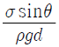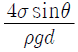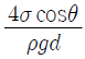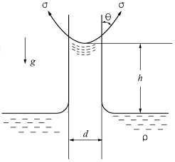 밀도가 ρ인 액체와 접촉하고 있는 기체 사이의 표면장력이 σ라고 할 때 그림과 같은 지름 d의 원통 모세관에서 액주의 높이 h를 구하는 식은? (단, g는 중력가속도이다.)