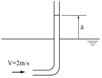 2m/s의 속도로 물이 흐를 때 피토관 수두 높이 h는?
