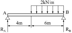 그림과 같은 단순보에서 전단력이 0이 되는 위치는 A지점에서 몇 m 거리에 있는가?