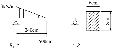 그림과 같은 단순보(단면 8cm X 6cm)에 작용하는 최대 전단응력은 몇 kPa인가?