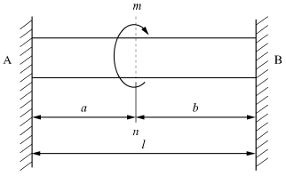 직경 d, 길이 l인 봉의 양단을 고정하고 단면 m-n의 위치에 비틀림모멘트 T를 작용시킬 때 봉의 A부분에 작용하는 비틀림모멘트는?
