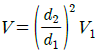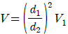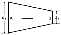 그림과 같은 원형관에 비압축성 유체가 흐를 때 A단면의 평균속도가 V1일 때 B단면에서의 평균속도 V는?