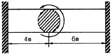 양단이 고정된 직경 30 mm, 길이가 10 m인 중실축에서 그림과 같이 비틀림 모멘트 1.5 kN ㆍ m가 작용할 때 모멘트 작용점에서의 비틀림 각은 약 몇 rad인가? (단, 봉재의 전단탄성계수 G=100 GPa이다.)