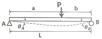 그림과 같은 보의 양단에서 경사각의 비(θAB)가 3/4이면, 하중 P의 위치 즉 B점으로부터 거리 b는 얼마인가? (단, 보의 전체길이는 L 이다.)