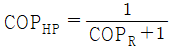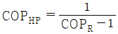 카르노 열펌프와 카르노 냉동기가 있는데, 카르노 열펌프의 고열원 온도는 카르노 냉동기의 고열원 온도와 같고, 카르노 열펌프의 저열원 온도는 카르노 냉동기의 저열원 온도와 같다. 이 때 카르노 열펌프의 성적계수(COPHP)와 카르노 냉동기의 성적계수(COPR)의 관계로 옳은 것은?