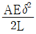단면적이 A, 탄성계수가 E, 길이가 L 인 막대에 길이방향의 인장하중을 가하여 그 길이가 δ 만큼 늘어났다면, 이 때 저장된 탄성변형 에너지는?